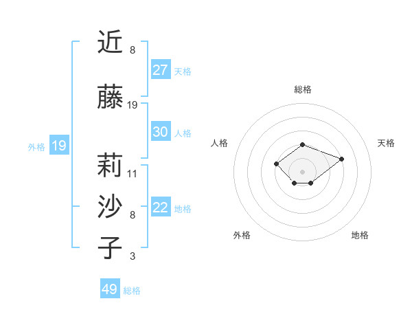 近藤 莉沙子さんを姓名の画数から五運を鑑定