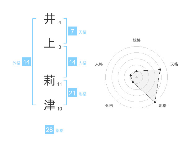 井上 莉津さんの総格は28画の1点!