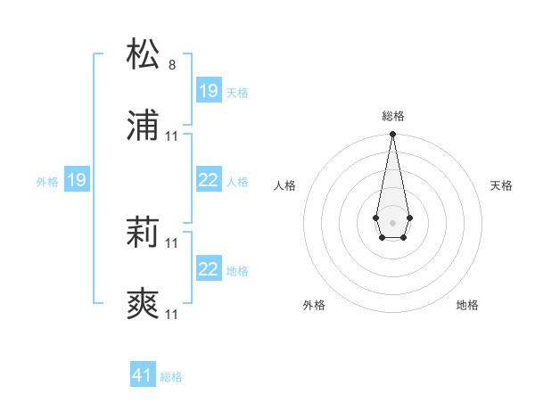 松浦 莉爽さんを姓名の画数から五運を鑑定