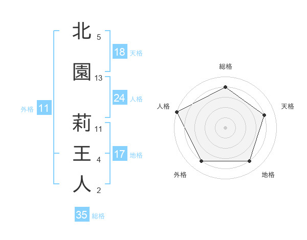 北園 莉王人さんを姓名の画数から五運を鑑定
