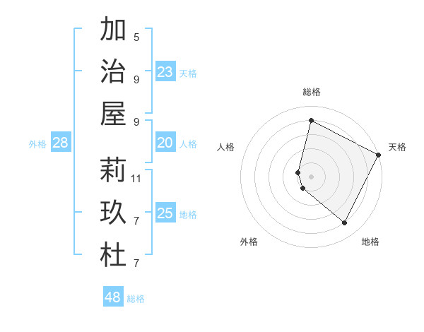 加治屋 莉玖杜さんを姓名の画数から五運を鑑定