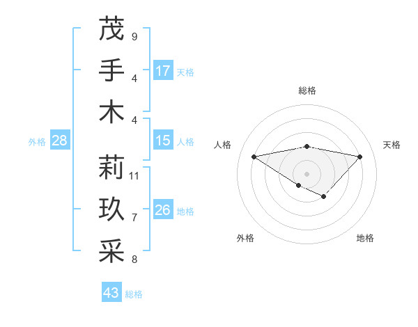 茂手木 莉玖采さんを姓名の画数から五運を鑑定