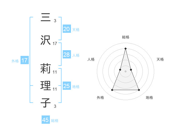 三沢 莉理子さんを姓名の画数から五運を鑑定