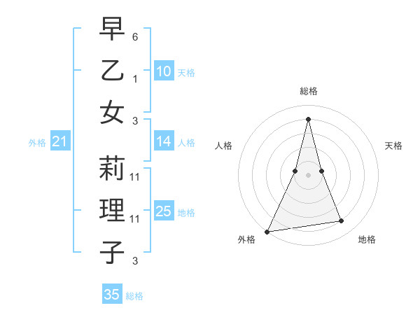早乙女 莉理子さんを姓名の画数から五運を鑑定
