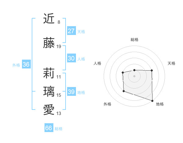近藤 莉璃愛さんの総格は66画の1点!