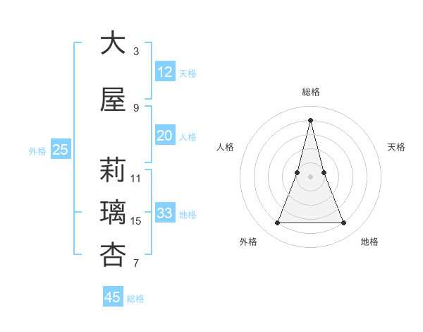 大屋 莉璃杏さんの総格は45画の4点!