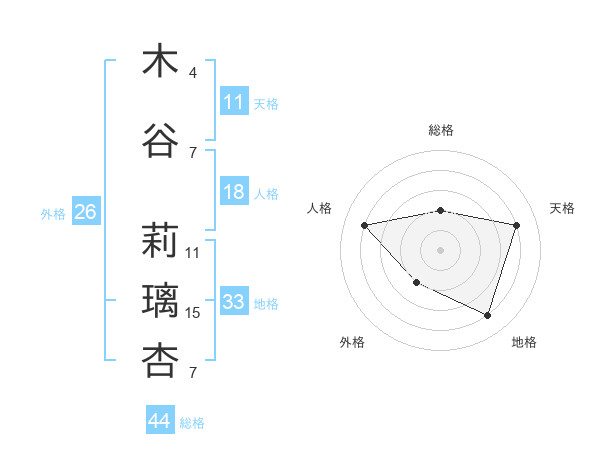 木谷 莉璃杏さんを姓名の画数から五運を鑑定
