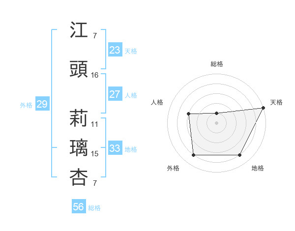 江頭 莉璃杏さんの天格は23画の5点!