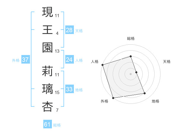 現王園 莉璃杏さんを姓名の画数から五運を鑑定