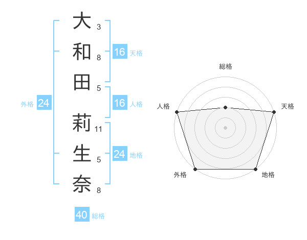 大和田 莉生奈さんを姓名の画数から五運を鑑定