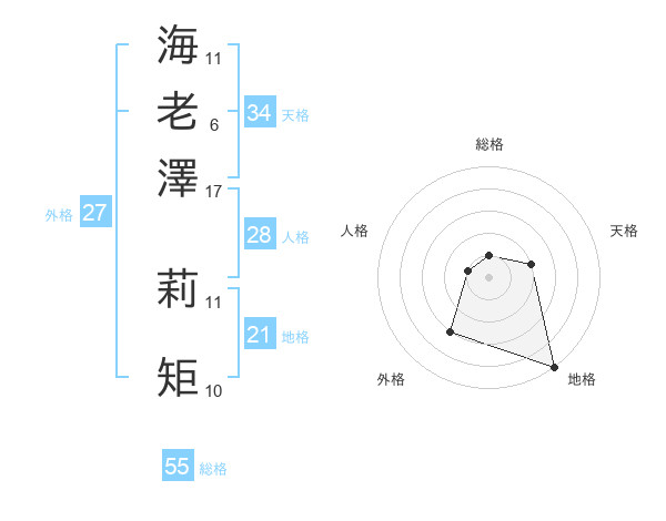 海老澤 莉矩さんの天格は34画の2点!