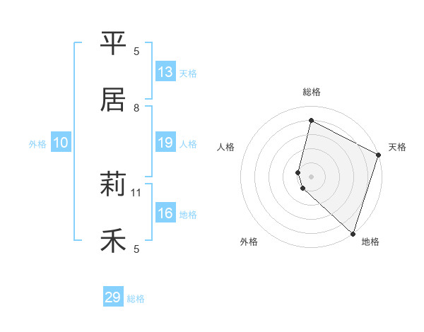 平居 莉禾さんを姓名の画数から五運を鑑定
