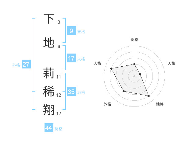 下地 莉稀翔さんを姓名の画数から五運を鑑定