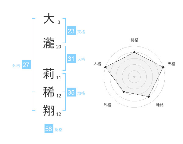 大瀧 莉稀翔さんを姓名の画数から五運を鑑定