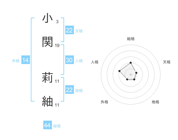 小関 莉紬さんを姓名の画数から五運を鑑定