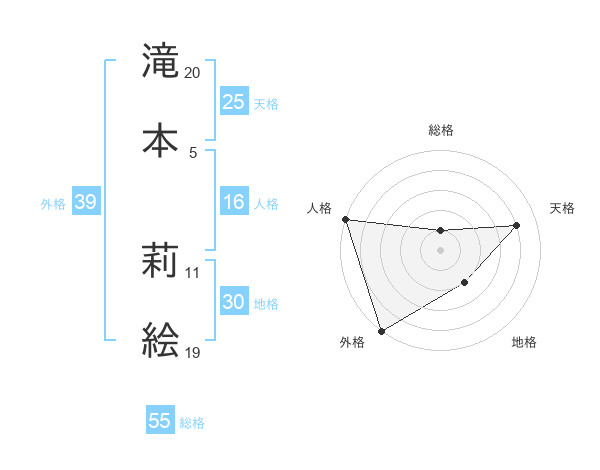 滝本 莉絵さんを姓名の画数から五運を鑑定