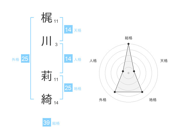 梶川 莉綺さんの総格は39画の5点!
