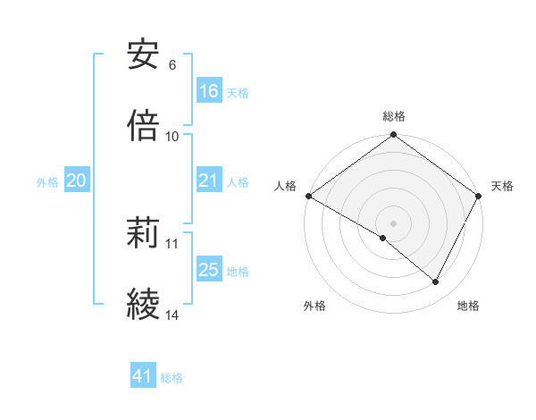 安倍 莉綾さんの天格は16画の5点!