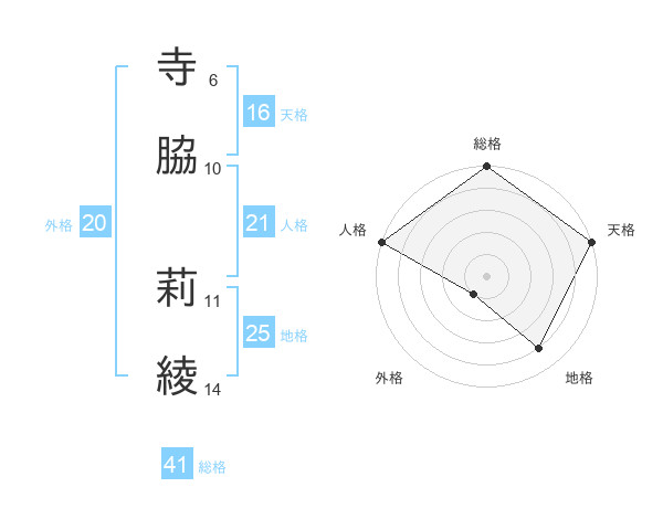 寺脇 莉綾さんを姓名の画数から五運を鑑定