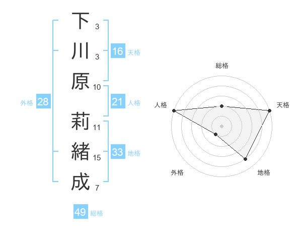 下川原 莉緒成さんの総格は49画の2点