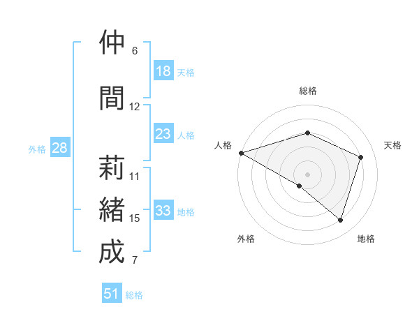 仲間 莉緒成さんを姓名の画数から五運を鑑定