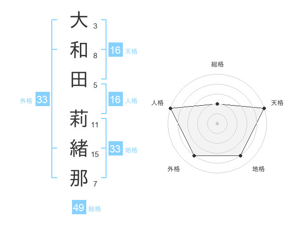 大和田 莉緒那さんを姓名の画数から五運を鑑定