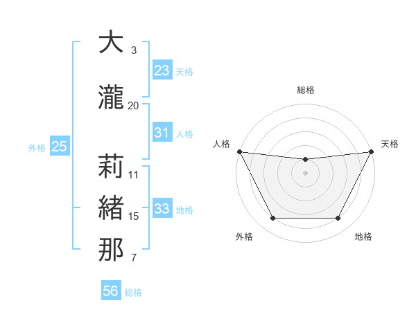 大瀧 莉緒那さんを姓名の画数から五運を鑑定