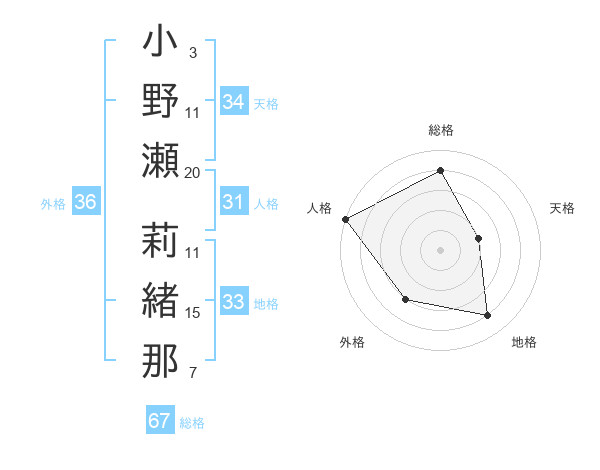 小野瀬 莉緒那さんを姓名の画数から五運を鑑定