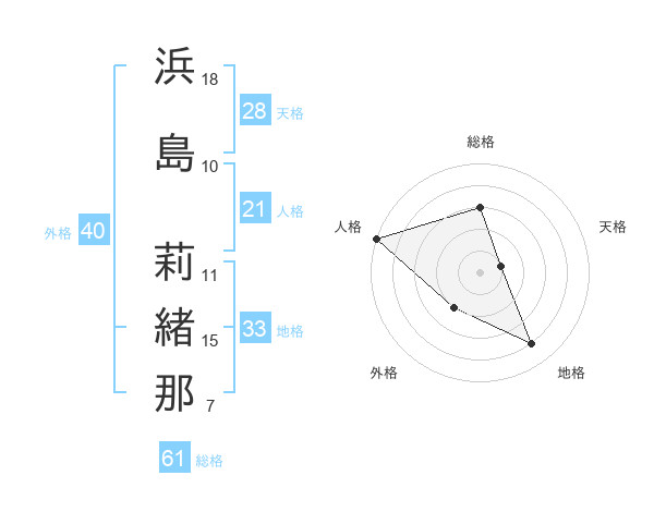浜島 莉緒那さんを姓名の画数から五運を鑑定