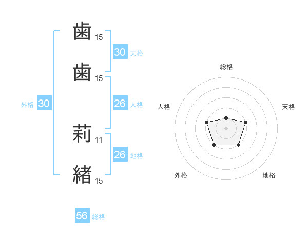 歯歯 莉緖さんを姓名の画数から五運を鑑定