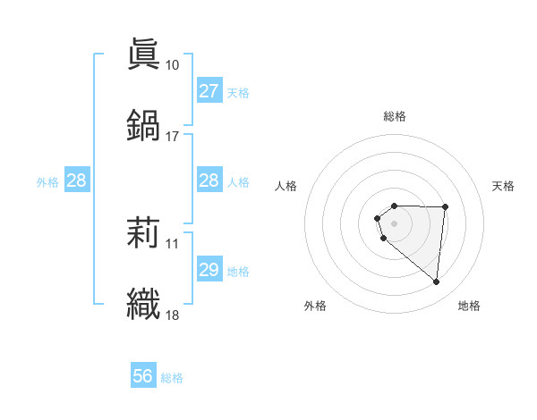 眞鍋 莉織さんを姓名の画数から五運を鑑定