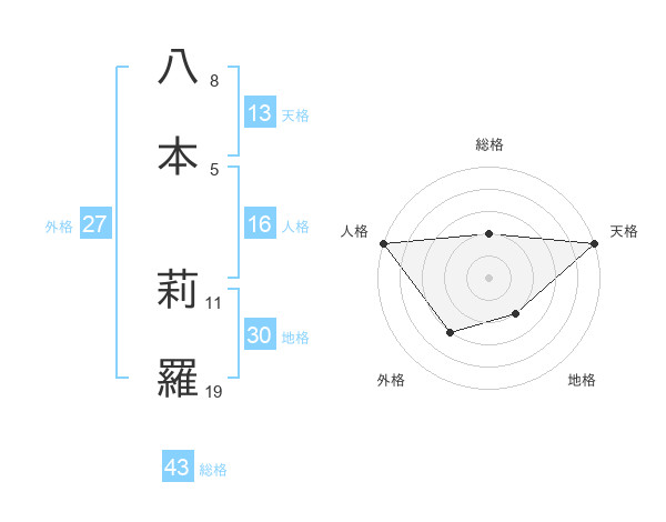 八本 莉羅さんの天格は13画の5点!