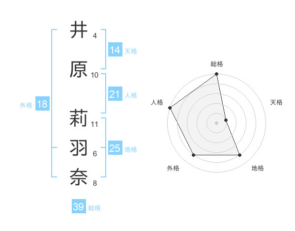 井原 莉羽奈さんを姓名の画数から五運を鑑定