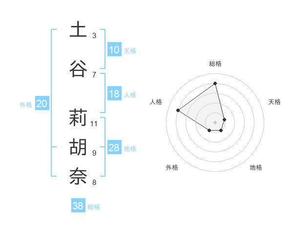 土谷 莉胡奈さんの総格は38画の4点!