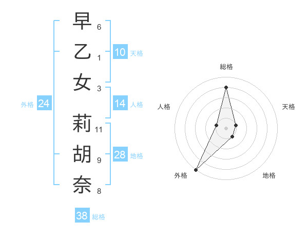 早乙女 莉胡奈さんを姓名の画数から五運を鑑定