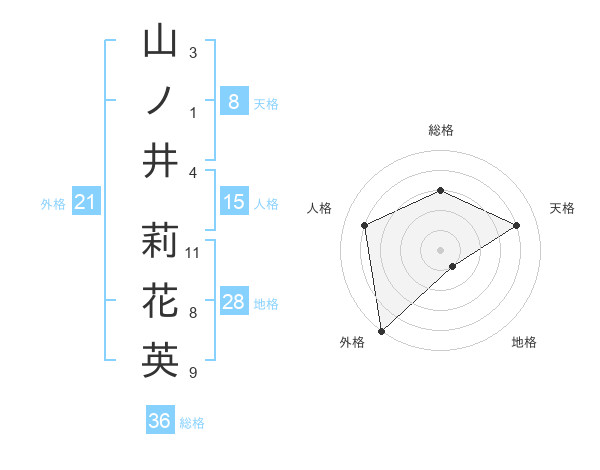 山ノ井 莉花英さんを姓名の画数から五運を鑑定