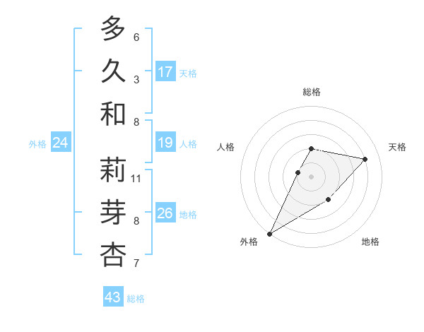 多久和 莉芽杏さんを姓名の画数から五運を鑑定