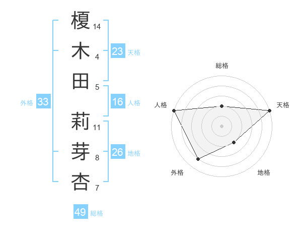 榎木田 莉芽杏さんの天格は23画の5点!
