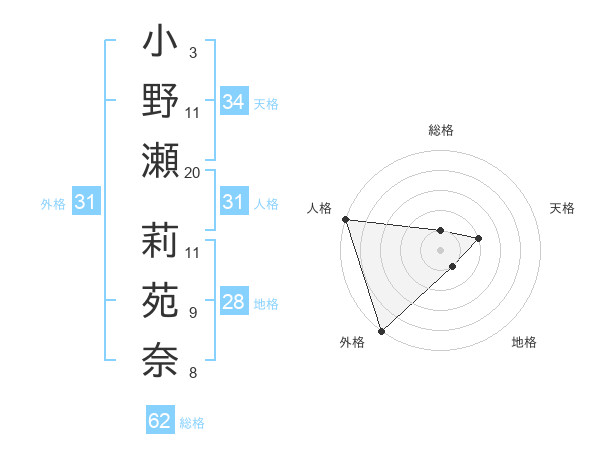 小野瀬 莉苑奈さんの人格は31画の5点!
