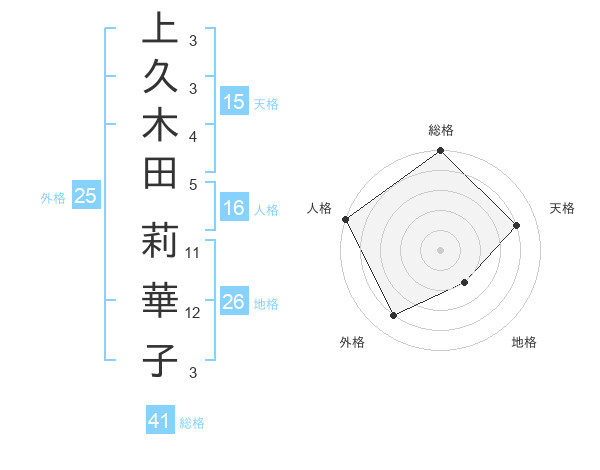 上久木田 莉華子さんの総格は41画の5点!