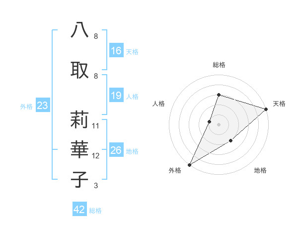 八取 莉華子さんを姓名の画数から五運を鑑定