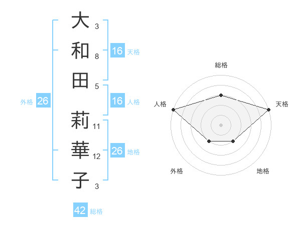 大和田 莉華子さんを姓名の画数から五運を鑑定