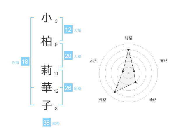 小柏 莉華子さんの総格は38画の4点!