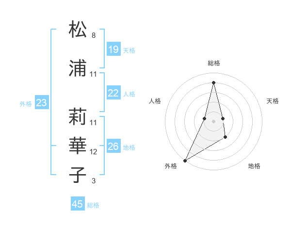松浦 莉華子さんを姓名の画数から五運を鑑定