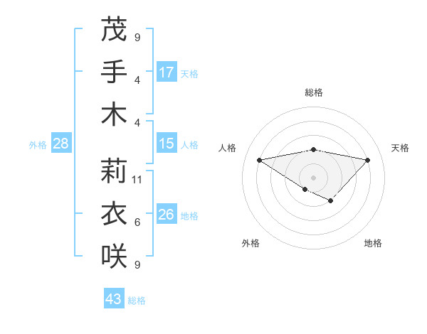 茂手木 莉衣咲さんを姓名の画数から五運を鑑定