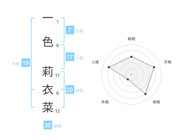 一色 莉衣菜さんを姓名の画数から五運を鑑定