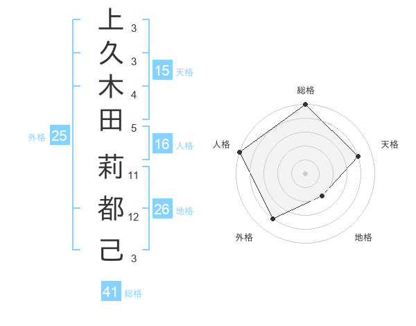 上久木田 莉都己さんの総格は41画の5点