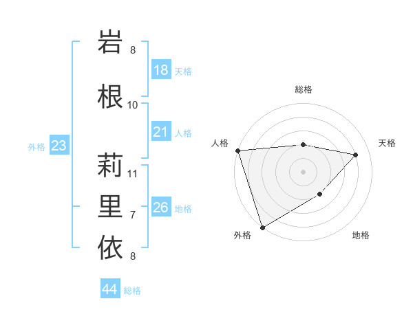 岩根 莉里依さんを姓名の画数から五運を鑑定