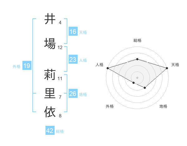 井場 莉里依さんを姓名の画数から五運を鑑定