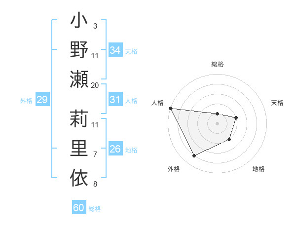 小野瀬 莉里依さんを姓名の画数から五運を鑑定